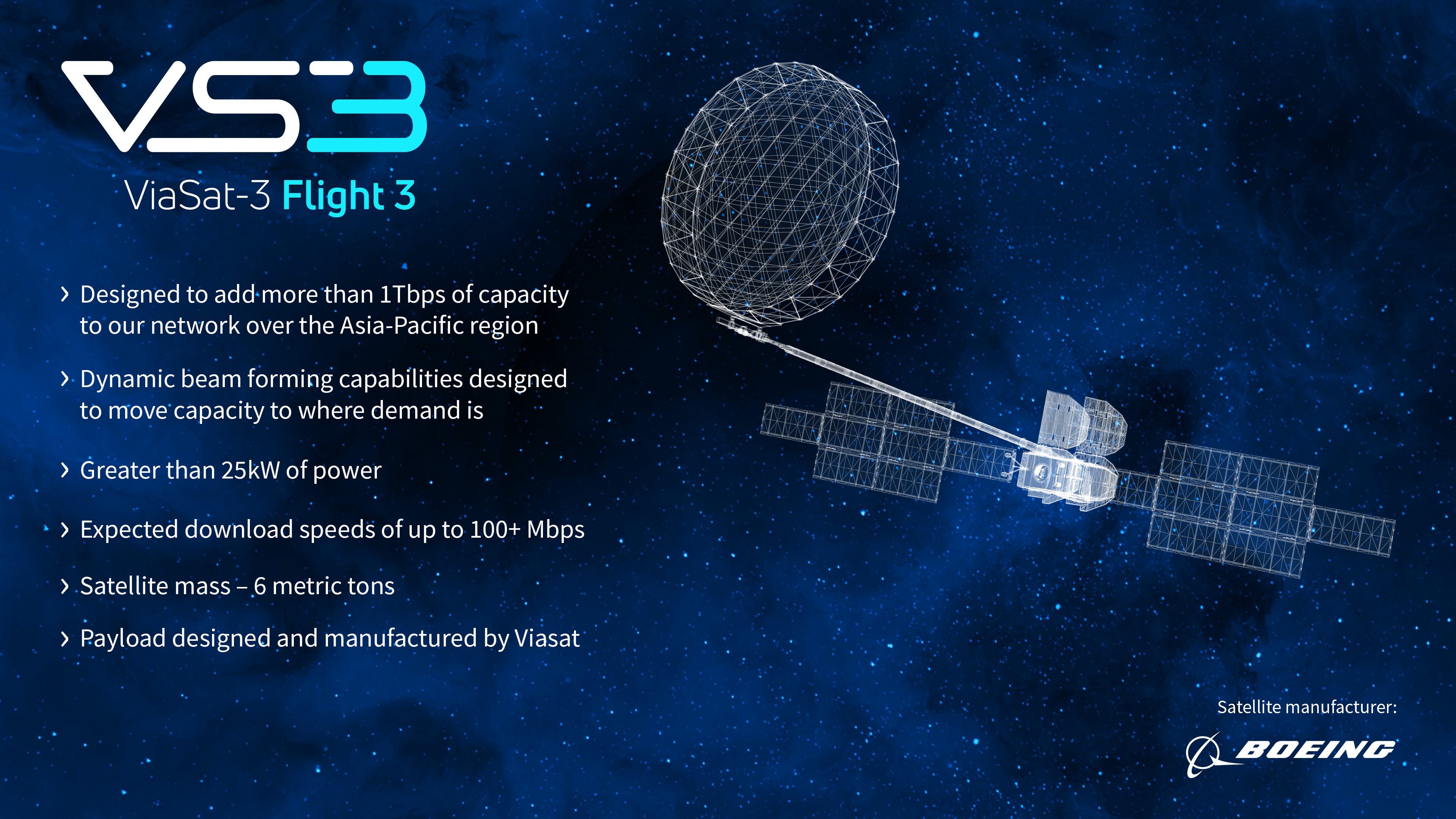 “Historically, when engineers designed a satellite, especially a broadband satellite like ViaSat-3 F2, they had to make a choice between coverage, capacity, or flexibility. You couldn't have all those attributes in a single satellite. With the ViaSat-3 constellation we have broken that paradigm and designed it to address all those important attributes. So, we'll serve an enormous coverage area with each satellite, along with the flexibility to move capacity wherever the demand is at any point in time. Coupled with immense capacity, the ViaSat-3 satellites can adapt to business needs, in real-time, unlike any other.”